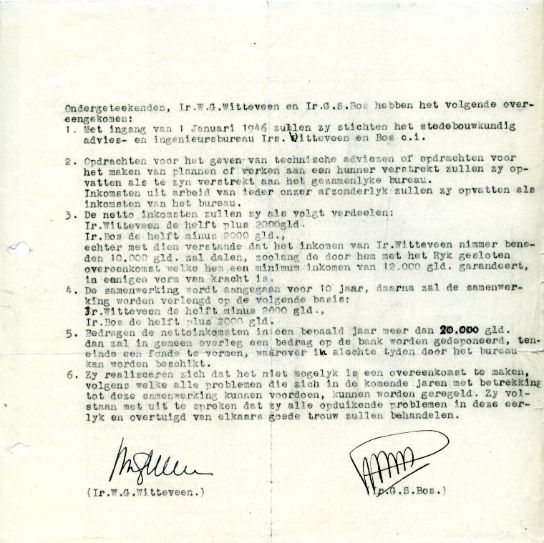 On an A4 sheet of paper they promised to ‘address any problems that may arise with honesty and in good faith’. The partnership contract survived until 1 January 1958 when Witteveen retired. Their successful association was built upon trust and reliability. And it still is.