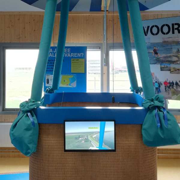 The experience begins in Hoorn. There it is possible to see that an urban beach is being constructed. The visitor then flies over the Het Park theatre and the new beach. By pressing a button, it is possible to compare the current situation with the future one. If the visitor wants to view a location up close, they can also press a button to virtually step out of the balloon’s basket.