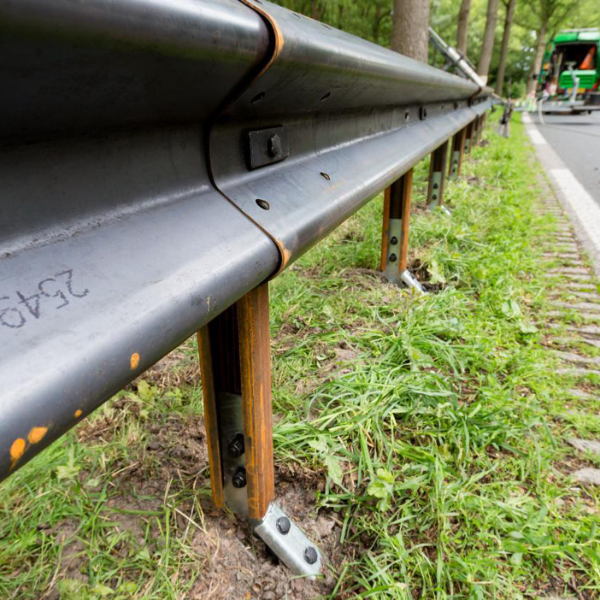 Its angled anchoring means the Compact Ecorail guidance structure also fits in where there are cables and pipes in the ground and limited space is available. In a collision, damage to the cables and the pavement structure is prevented. The crash barrier superstructure consists of weatherproof steel, a strong material suited well to the landscape. The design fits seamlessly with standard and commonly-used crash barriers.