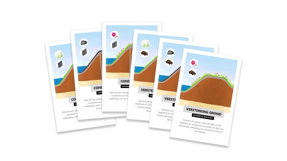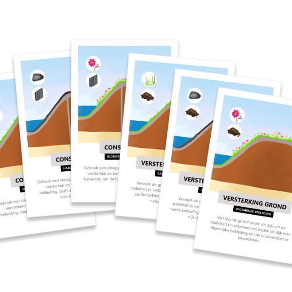 ‘Dyke Dynamics’ was created for and with all stakeholders involved in dyke reinforcement projects. The game can be played by local residents, policy makers, water authorities and project engineers. The aim is to build a sustainable dyke that remains reliable for 150 years with minimal environmental impact. The winner is the player who accumulates the most environmental points (through sustainable constructions according to ECI measurements), on the condition that the dyke holds up.