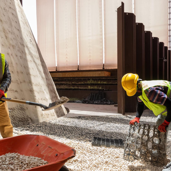The Netherlands Pavilion was built with sustainability in mind, being a temporary structure designed to be used for only six months. Raw and recyclable materials were purposefully chosen when constructing the Netherlands Pavilion. Maarten Veerman, project manager at Witteveen+Bos for the Netherlands Pavilion, explains: ‘The pavilion was designed with circularity in mind. This is reflected in the choice of materials used for all components, including structural elements. Our team worked with a structure of steel sheet piles and steel tubes, as those materials are widely available and known for their reusability. Sheet piles are often used in temporary structures and many companies rent them out, contributing to the project’s fully sustainable nature.’