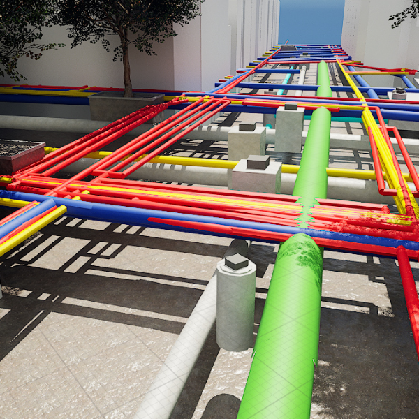 Due to increasing prosperity and technical innovation, the underground space is becoming ever fuller with sewerage systems, water pipes, and data and electricity cables. As a consequence, the risk of damage during earthworks is increasing and it is becoming increasingly difficult to locate free space. Thanks to our Integrated 3D Pipe Design digital tool, infrastructure-related tasks can now be carried out quickly and accurately and the underground space can be kept under control.