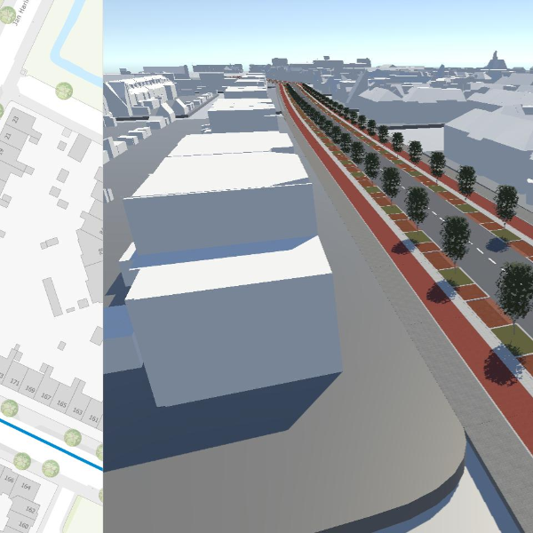 The Witteveen+Bos InfraShaper digital tool generates a 3D environment of an existing area, combined with a Google Maps Streetview Overlay.