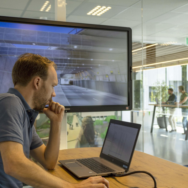 Our technology also makes it possible to add virtual traffic – for example, to test whether a tunnel closes correctly or to monitor the operation of temporary emergency lane barriers. The 3D model also allows testing of whether emergency exits and help points are clearly visible and/or accessible.
