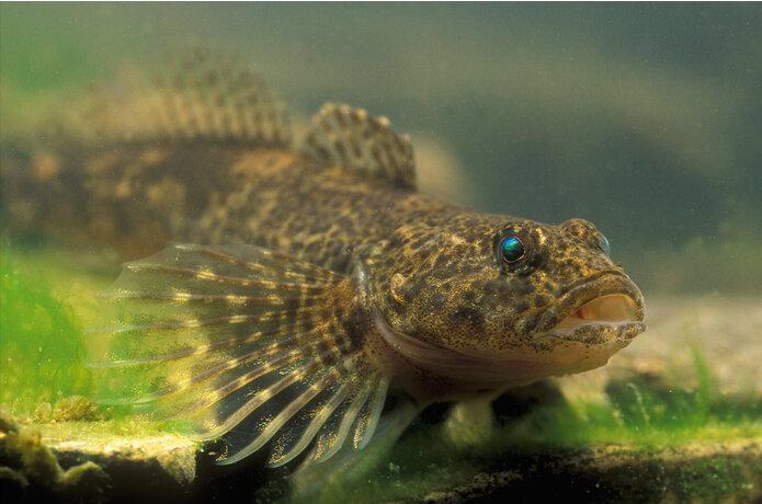 The gabions do not have any function for the fish; they are used to install the fish stones with a crane in a controlled way. This measure has various objectives, including creating a suitable habitat for the Chabot Bullhead (see image), which once lived in the canals.