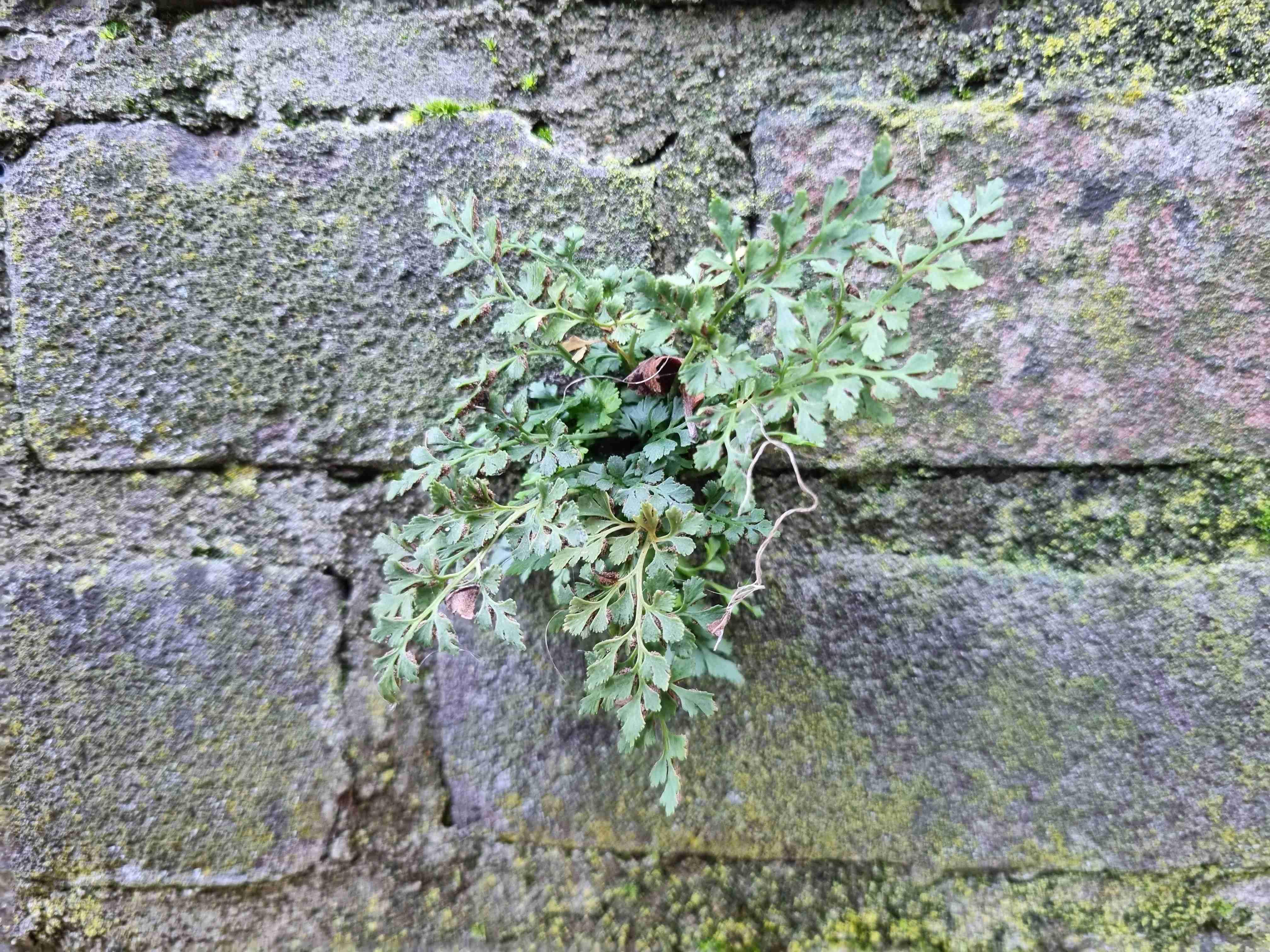 The mortar facilitates the (spontaneous) growth of wall flora in the brickwork joints (see image). The design also takes account of the correct moisture levels for wall flora. The porosity of the masonry and the water level play an important role.