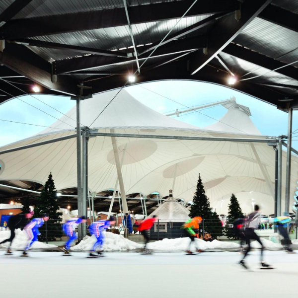 The De Scheg sports complex opened in 1993 and consists of an ice skating stadium, a swimming paradise, competition and instruction pools and a sports hall. De Scheg intends to be a major facility for sports at all levels, education and culture in Deventer and the region. To achieve this ambition, the complex has been reshaped into a sports and experience centre. The most visible addition was the covering of the stadium with a membrane roof.
