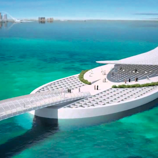 The Sharq Crossing (formerly known as the Doha Bay Crossing) Masterplan was developed by Santiago Calatrava for the Ministry of Municipal Affairs and Urban Planning (MMUP) in Qatar. With a unique, iconic design, this tunnel/bridge combination connects the airport with the West Bay Financial District and the Cultural City on the mainland.