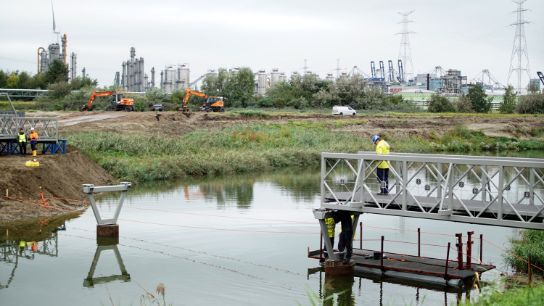 A historical and touristic landmark in the Waasland region, Fort Liefkenshoek entered the final phase of its project in late September. The project had a dual purpose: firstly, to restore the historical fortifications of the old military fortress in Kallo to their original state, and secondly, to create a new pedestrian bridge and parking facility for cars and buses to enhance connectivity with the fort.