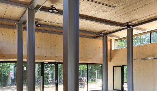 The main wooden structure of columns and beams combined with CLT (Cross Laminated Timber), floors and walls divides the building into three distinctive zones, and closely reflects the specific wishes of the water authority. The open space can also be divided into separate areas by means of partition walls. This enhances the functional and sustainable character of the building.