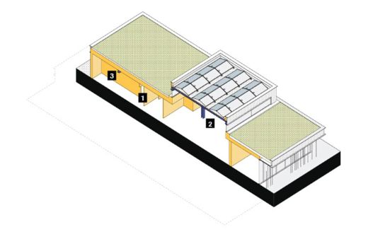 Naturally, the heating, ventilation, and air conditioning system has been integrated into the design. PV panels installed on the green roof provide sustainably generated electricity. In summer, occupants of the building will be protected from direct sunlight thanks to an overhang of the eaves on the south-west side. This enhancement also contributes to the layout of the design, as the open and closed façade surfaces emphasise the functional zoning of the office building. In short, the result is a pragmatic, circular design that was completed in a short time frame. This was mainly due to efficient collaboration with the client. The methodical approach through our Sustainable Design Principles also contributed to a consistent and effective roadmap towards the final design.