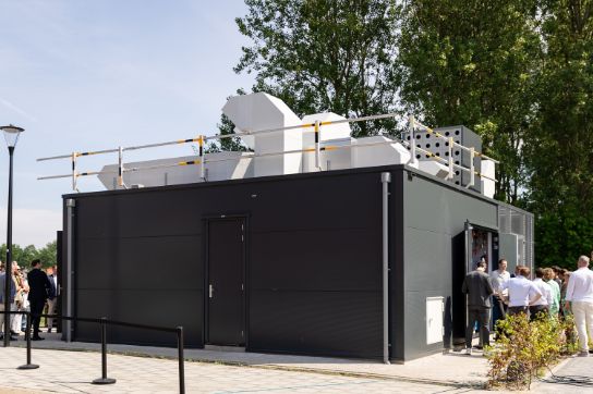 If overproduction does occur, then InnovaHub stores the excess energy either by using batteries or (via electrolysis) green hydrogen, or in the form of (waste) heat or cold. Battery storage is suitable for brief production peaks. For prolonged overproduction, such as during the summer months, InnovaHub produces green hydrogen. Ideal for season-based storage, the hydrogen can be converted into electrons within the hub.
