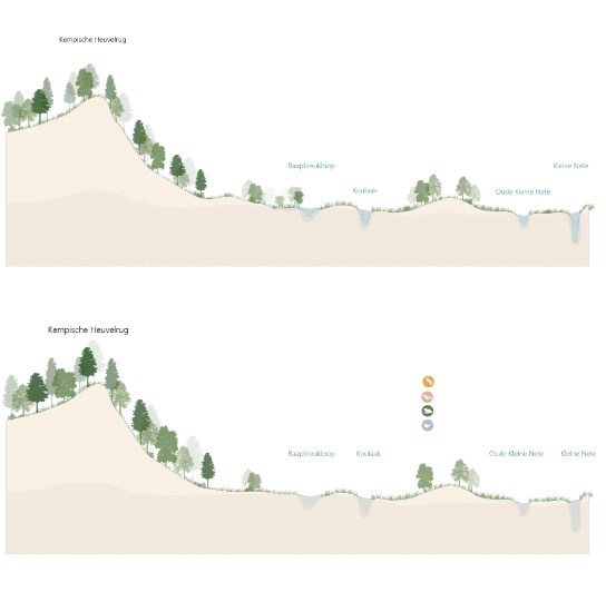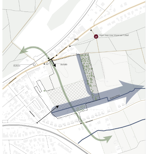 The site lies between the Herentals ridge and the Kleine Nete valley. Dune landscapes are extended into the site, while wetlands are created in the south to tackle waterlogging and seepage. A climate-resilient neighbourhood that feels like home.
