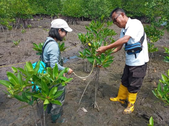 On 16 December 2021, the first trees were planted in the presence of Pak Aprizal Bahar (head of LHK Bintan), Pak Hendri (LHK head of Riau province) representing the governor’s office, and Ibu Desriyati (head of department, LHK Tanjungpinang). Erika Ng, ecologist at Witteveen+Bos Singapore: ‘We initially started with 570 mangrove trees. This eventually became 2,850. Locals participated in the planting phase, for which they received a small payment. This gave residents the opportunity to engage with the initiative. Also, a group from the Sustainable Executive Leadership of Executives’ Global Network (EGN) visited the site to learn about sustainable mangrove restoration practices and their significance for both ecology and local communities.’