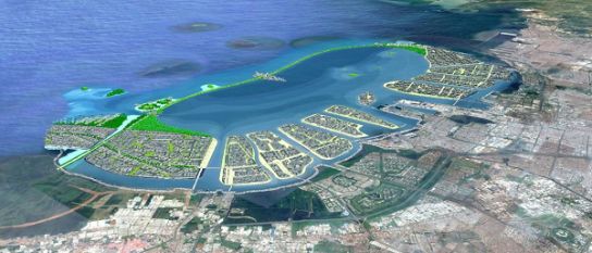 The creation of a fully closed dam between the east and west of the bay in one step is not politically viable as the impact on coastal fishing would be too great. The solution chosen was a partial dam (a sort of breakwater), which is designed to reduce the height of waves from the sea by some 1.5 metres.