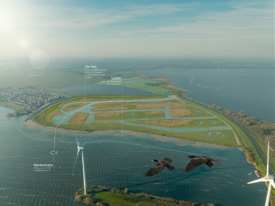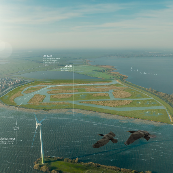 The Markermeer is ecologically vulnerable due to declining biodiversity, insufficient connections and a shortage of spawning and living areas. As part of the government's Programmatic Approach to Larger Water Bodies (PAGW) programme, Witteveen+Bos carried out a MIRT Exploration to strengthen the robustness of the ecosystem by improving or creating habitats for birds and fish. Our landscape designers took care of the planning process, design and visualisation for seven promising locations.