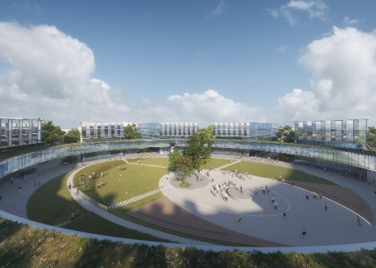 The design concept also makes links with major global themes, such as caring for the climate and environment. A park will be built on the campus that enables natural water storage and other forms of climate adaptation, with the design also seeking to maximise energy savings, reduce its carbon footprint, and utilise renewable energy sources.