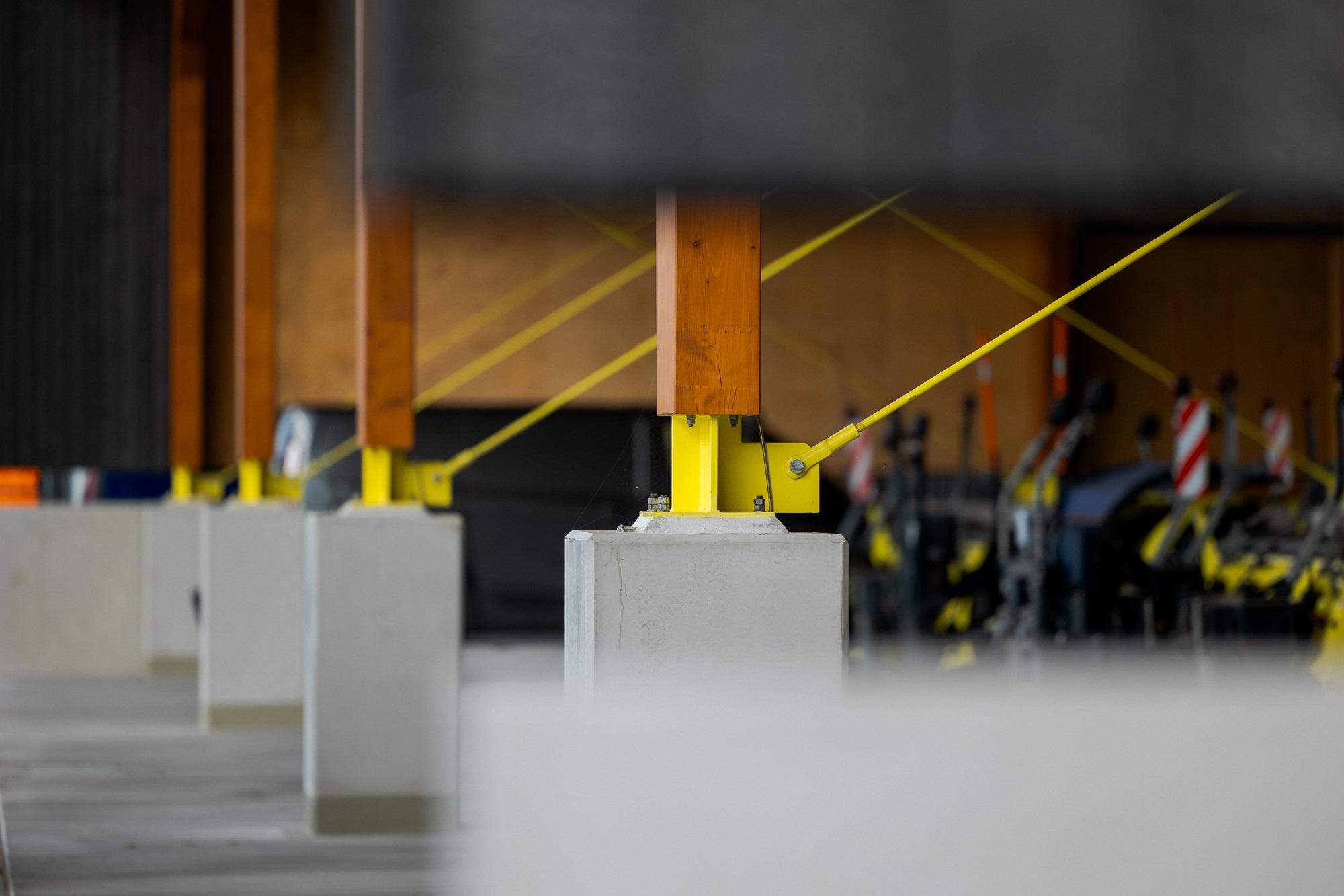During the design process, two options were considered for the circular construction of the service building: reuse of concrete T-beams from an office building to be demolished and reuse of steel columns and beams. Because the office building could not be demolished in time, the structure was built with reused steel columns and beams, which are more widely available. This ensures that a circular solution is always available and allows us to expand the reuse of other circular structures in our designs.