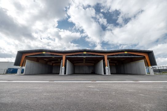 The concrete walls of the car park and salt shed are made from recycled granulate. Grass asphalt serves as a covering for the hard surfaces on the site, with the bitumen replaced by elephant grass. Bio-based wood fibre has been used as insulation material. Wadis and insect hotels have been incorporated into the site. Bat boxes have been placed on the wooden trusses of the storage facility and the service building has green roofs.