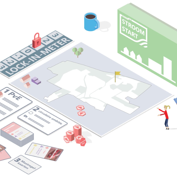 The serious game Stroomstart gives project teams a playful insight into how they can steer towards circularity in every phase of area development. In the game, participants are given the assignment to limit primary raw material usage by choosing certain measures. Each measure has a different impact on, for example, climate adaptation, energy use and/or the environment.