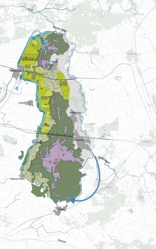 The concept was studied further and adapted to the Sallandse Heuvelrug area in the ‘Eternal Source’ preliminary exploratory study. We studied four conceptual variants to determine the most important effects on the water system, nature, agriculture, drinking water production and other aspects of importance to society.