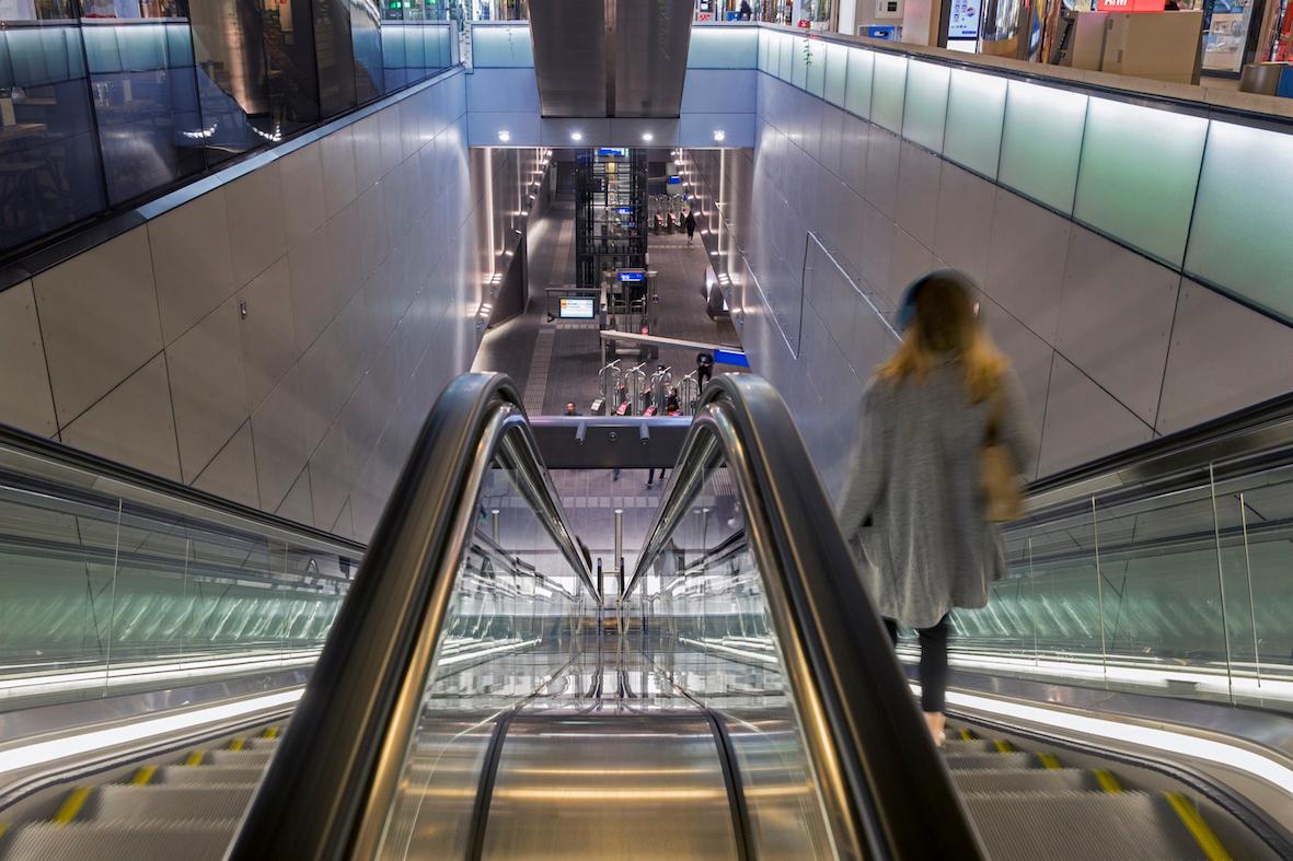 To guarantee safety in the North/South Line, a whole range of measures has been devised. The North/South Line is quite unique, with deep stations and compact tunnels. People must have enough options to escape. This was something to take into account from the start of the design. Escape can be done by means of escape shafts, which are kept under overpressure to stop smoke, there are cross passages between the tunnels and the escalators are also necessary for evacuation. It was against the rules to use escalators for this purpose. Authorisation took years.