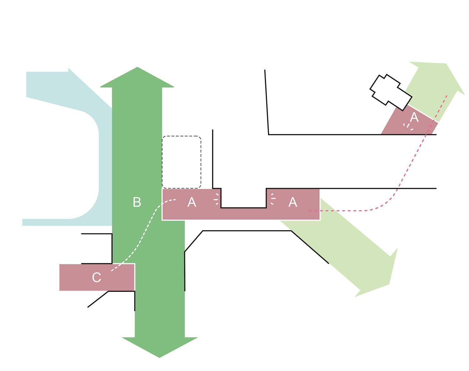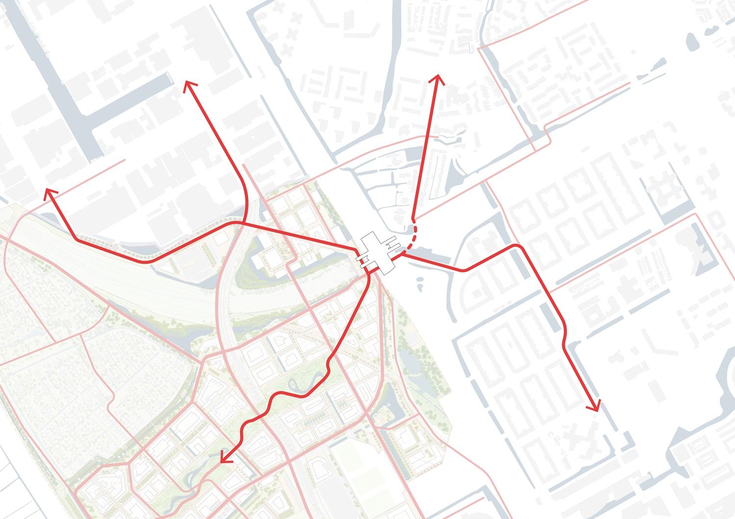 Pedestrians and cyclists (walkers and cyclists) are given priority according to the STOMP principle, with direct and safe routes to the entrance and bicycle parking facilities. Car traffic is limited to functional Kiss & Ride areas on the edges of the area.