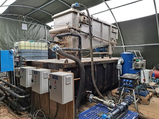 To remove PFAS from the groundwater in the first phase, it is rinsed in a water treatment installation during excavation. The water is then returned for further rinsing. For this process step, Witteveen+Bos created the technical design for the water treatment installation. The installation, which is approximately half the size of a tennis court, consists of separate process steps. Each step has either previously been tested in the field or in a lab, or is already being deployed on a large scale. The first process step involves pretreatment using coagulant dosing and pulverised coal.