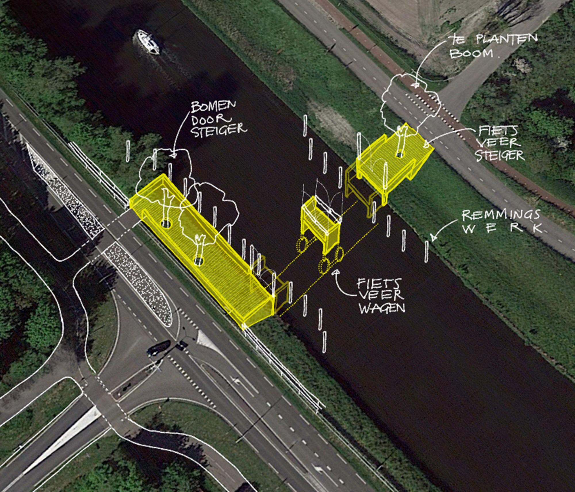 This design research was explicitly carried out in a participatory manner. In addition to close cooperation with a local working group with representatives from the municipalities, the water board, Staatsbosbeheer (the Dutch Forestry Commission) and the province, discussions were held with local entrepreneurs and residents during cycling tours through the area.